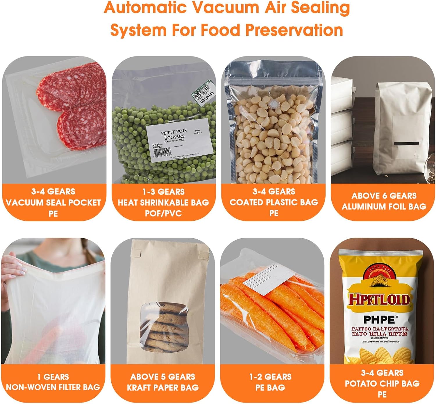 - Adjustable Timer Setting --- Adjustable heat settings for the different materials being used. For most applications, using the impulse heat sealer at a heat setting of 3 is sufficient. However, different temperature settings will be more suitable for certain materials of a higher or lower melting point or thickness. The adjustable timer makes it easy to sell a variety of packaging.