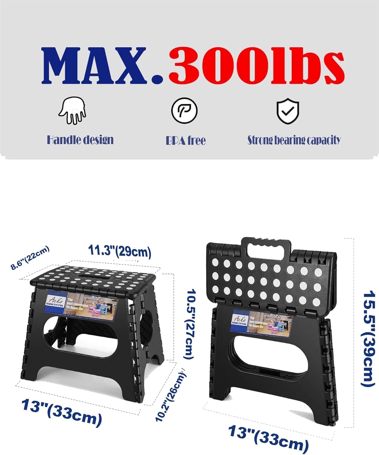 • PREMIUM QUALITY - Manufactured to highest standards, made of tough & Sustained heavy duty plastic for long lasting durability. Our folding step stool has been approved by EN 14183 Certificate, all products are qualified factory test.