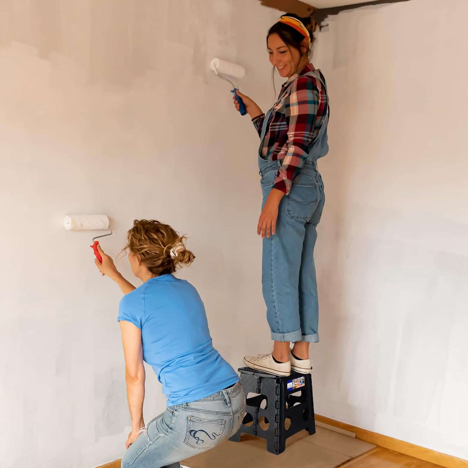 - 【Foldable Step Stool Widely Use】:The beauty of folding stool is, it can be used for multi purposes. Being a portable, it is suitable for classroom,bathroom,kitchen,camping, repair, fishing, line up, paint, garden, office, travel, outdoor and more.