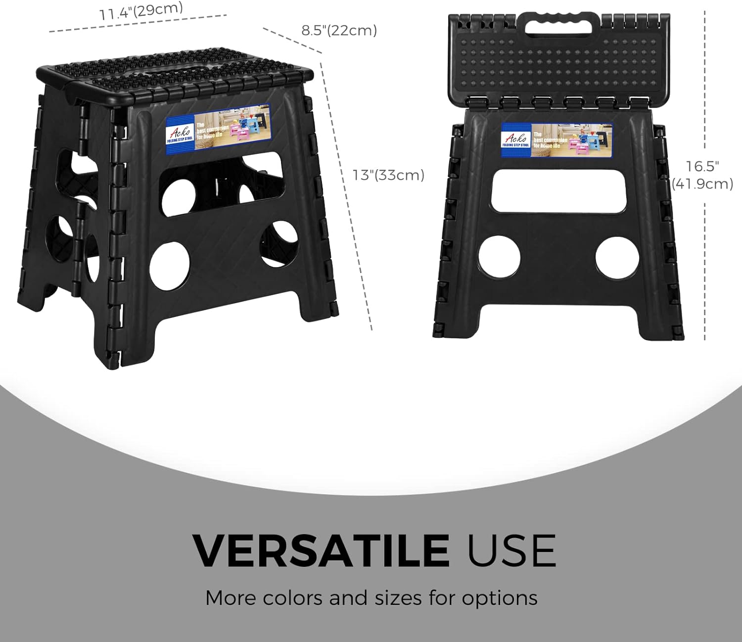 - 【Folding Stool Space Saving And Easy to Carry】:ACSTEP collapsible step stool is only 1.5 inches thick when folded that is easy to store in any small corner of home,And the folding stool of the weight is 2.58 lb,Lightweight that Portable to Carry Out