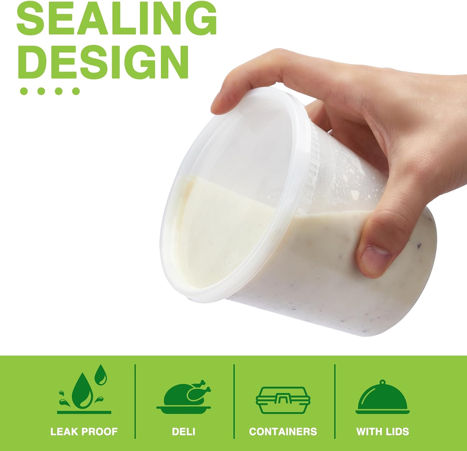 Premium Quality Deli Containers:  Deli Containers are made of BPA-free, food-grade PP plastic. Can withstand temperatures from -40°F to 250°F or (-40°C to 120°C). Manufactured via injection molding to ensure a leak-proof, tight seal for your meals or snacks. Snap-lock lid keeps your food, soup, yogurt, dessert, or drinks fresh and secure. Easy-open lids allow easy packing and easy meals on the go!