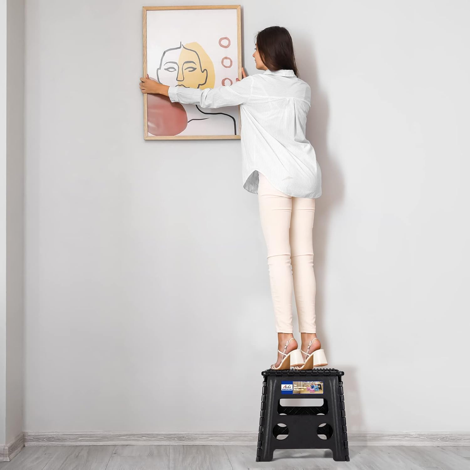 【Premium Quality, High Load Capacity】 step stool made of high-strength of ABS material. Sustained, this heavy duty material is long lasting. Inner honeycomb structure is uniquely designed in such a way that makes the stool extra strong and safe. It can effortlessly hold up to 300lbs!