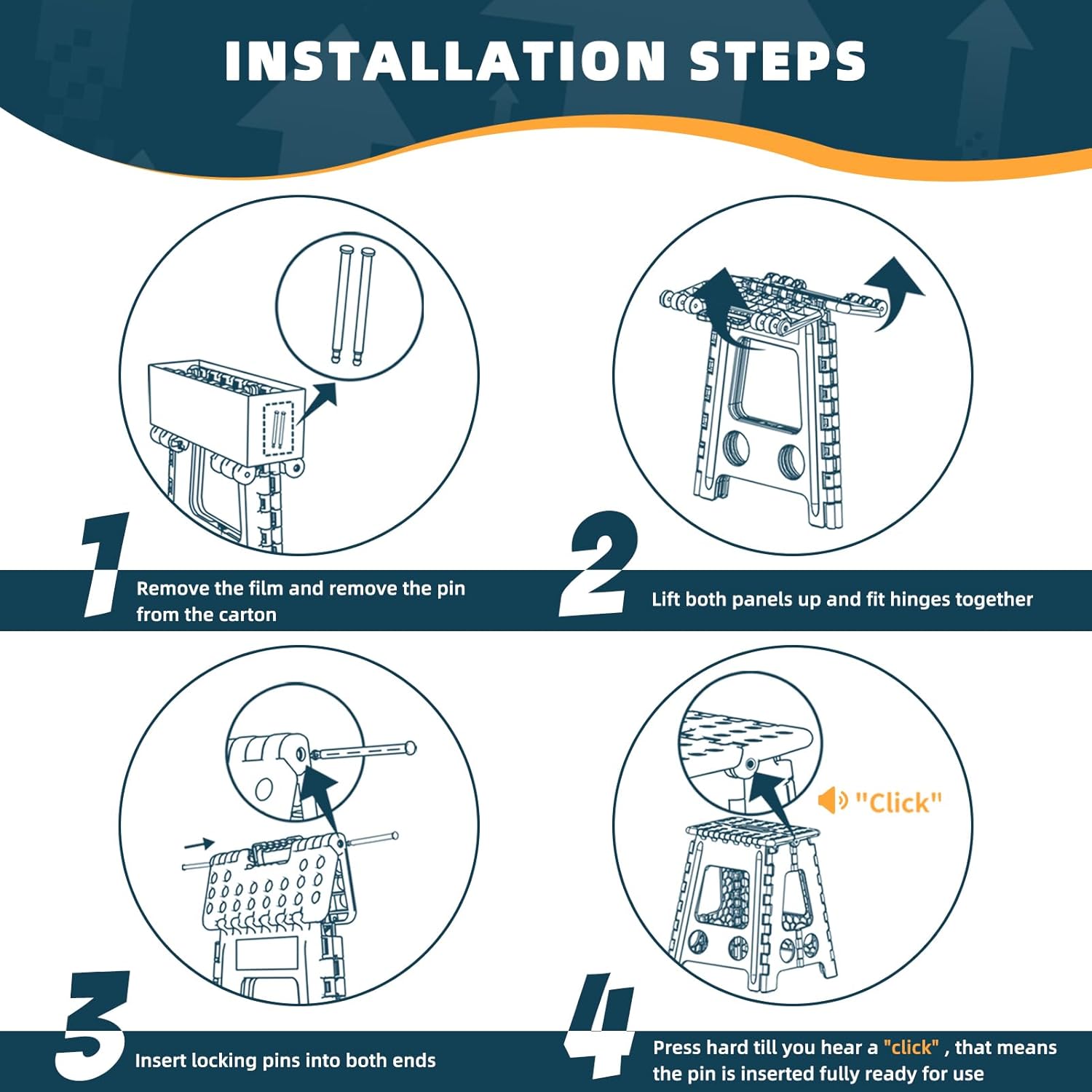 • PREMIUM QUALITY - Manufactured to highest standards, made of tough & Sustained heavy duty plastic for long lasting durability. Our folding step stool has been approved by EN 14183 Certificate, all products are qualified factory test.
