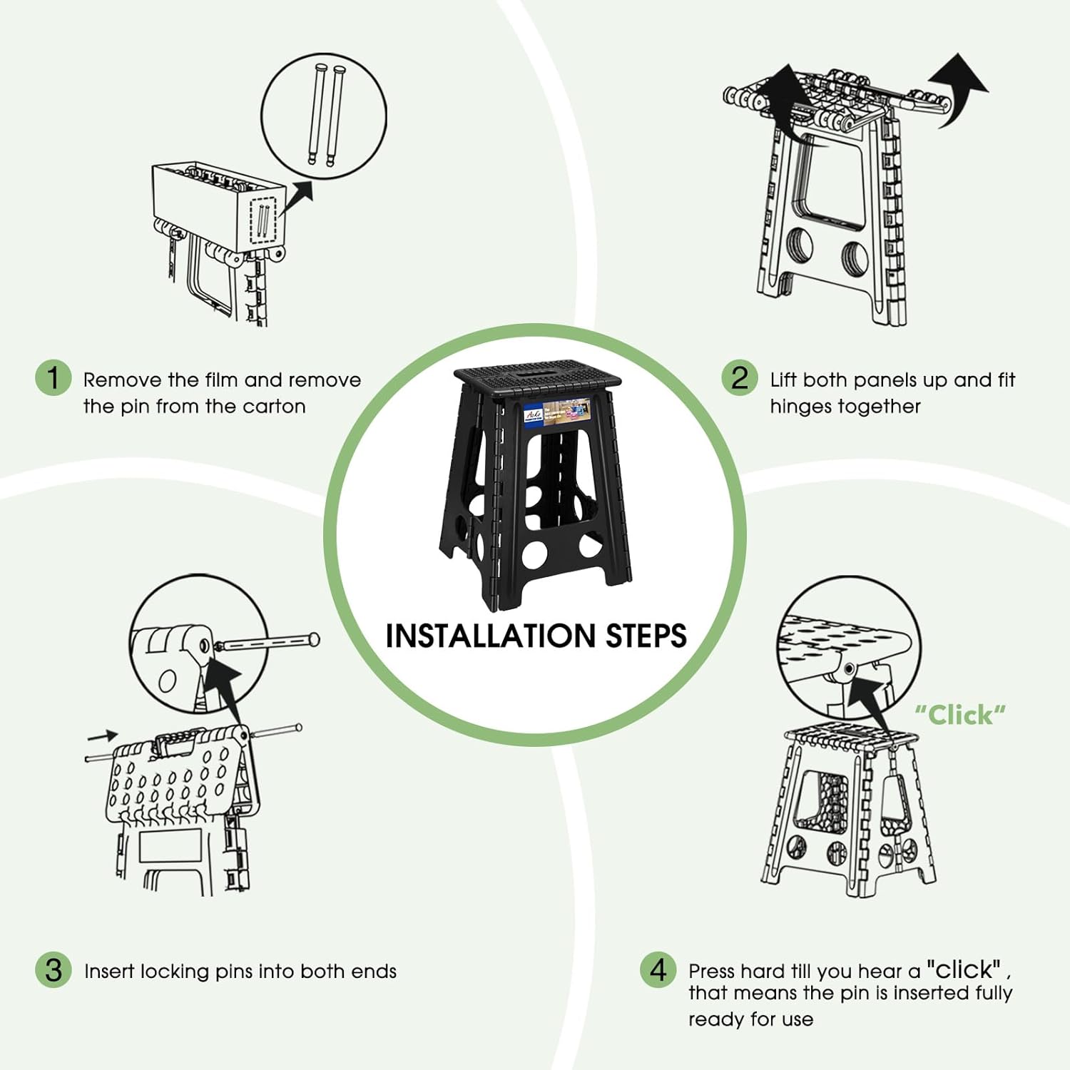 【Sturdy and Reliable】Our patented step stool with a pin structure,Max holds up to 400 lbs.Reach new heights with our portable stool design, heavy duty for adults and kids alike.