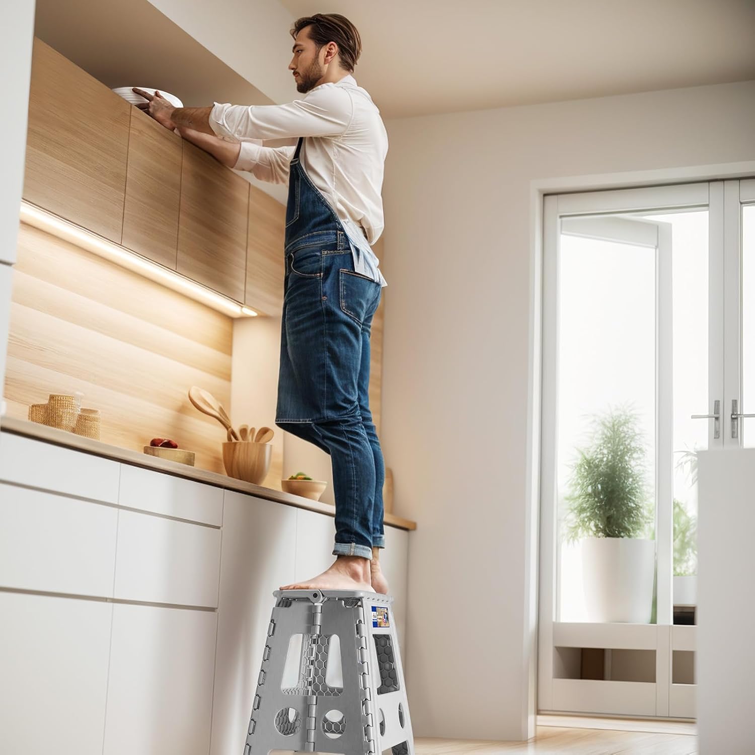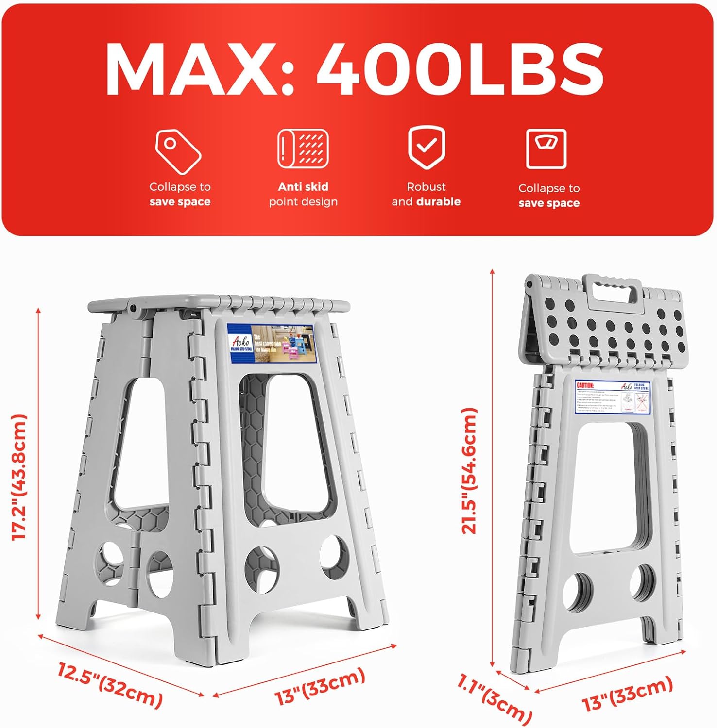 • PREMIUM QUALITY - Manufactured to highest standards, made of tough & Sustained heavy duty plastic for long lasting durability. Our folding step stool has been approved by EN 14183 Certificate, all products are qualified factory test.