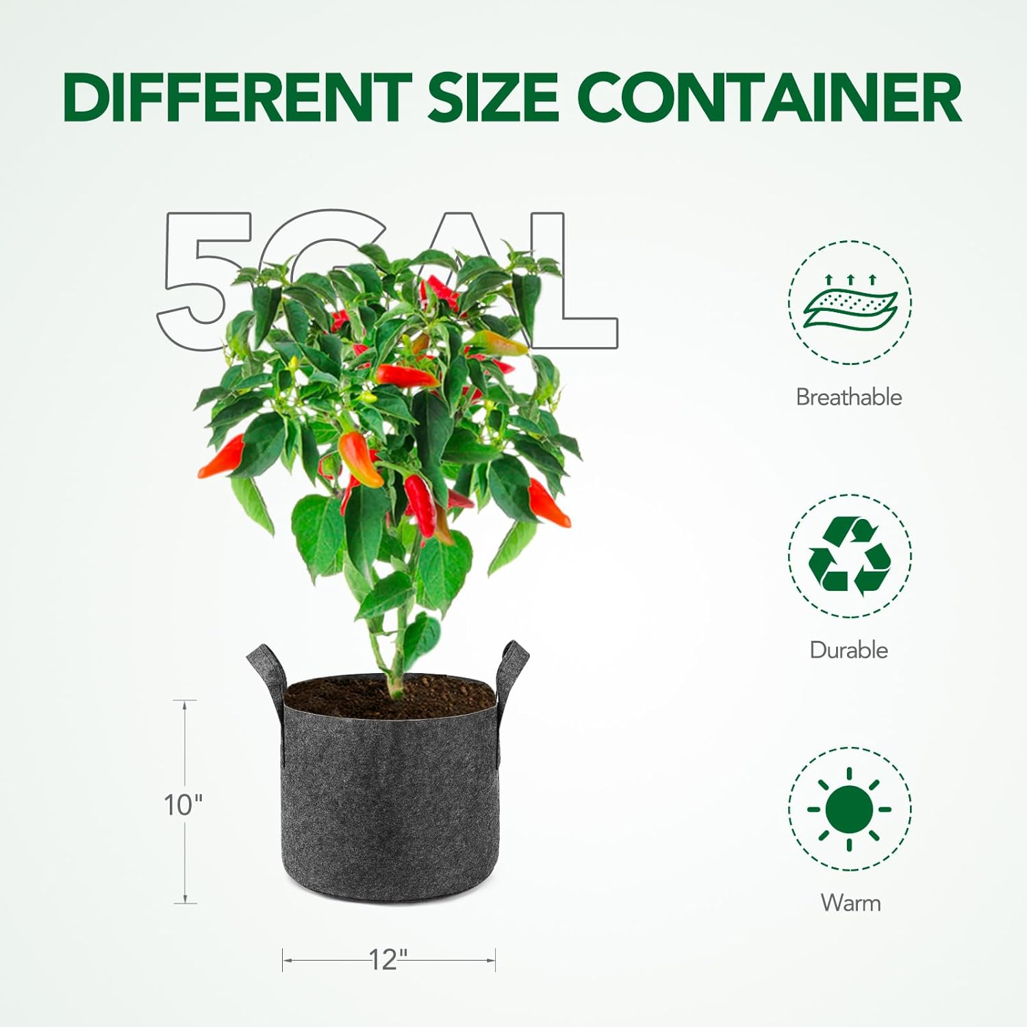 - 【Large capacity】12 pack-5 gallon. Get the best planting bags and buy them at once to meet all your needs.