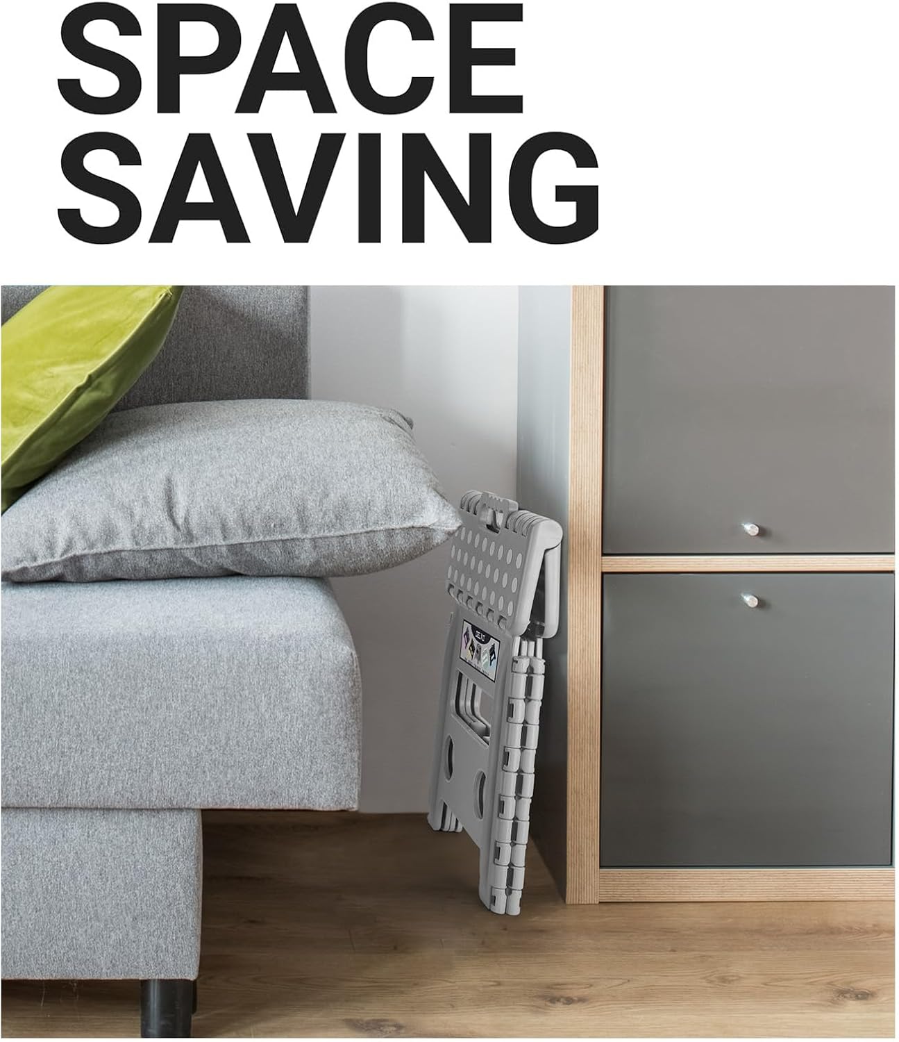 - Sturdy & Safe Foldable Step Stool : Our folding step stool is handy to have around for all sorts of occasions. Compact at 13"H×14"L×11"W when opened and 17.5"H ×13"L×1.2"W when folded, this durable and strong plastic step stool can support up to 300lbs. It is lightweight and versatile, and can be used both outdoors and indoors in the kitchen, bathroom or office